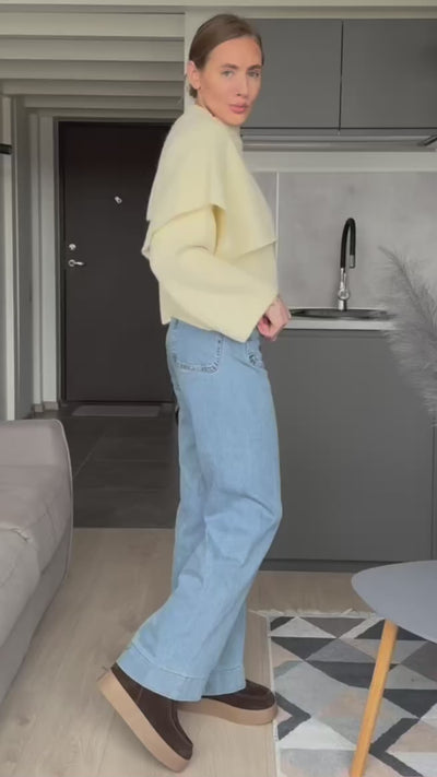 Tai nėra batai žiemai – tai batai būsenai, kai norisi ramiai ištverti šaltį be perteklinio heroizmo, be dramatizmo, tik su savitu švelnumu. Pilkšva zomša čia veikia kaip atsakas į miesto tylą, o kontrastingas baltas kailiukas – tarsi netikėtas šviesos blyksnis, kuris ne apšviečia, bet sušildo. Minimalistinė forma įgauna svorio per proporcijas: pakelta balta platforma ne vizualiai didina, bet metaforiškai kilsteli virš buities, suteikia stabilią distanciją nuo šlapdribos, niūrumo ir žiemos nuovargio. Jie yra tarsi architektūrinis peizažas tavo kasdienai – paprasti, bet griežti, jaukūs, bet be infantilių gestų, su aiškia pozicija – būti šilumoje, bet vis tiek išlikti miesto dalimi.