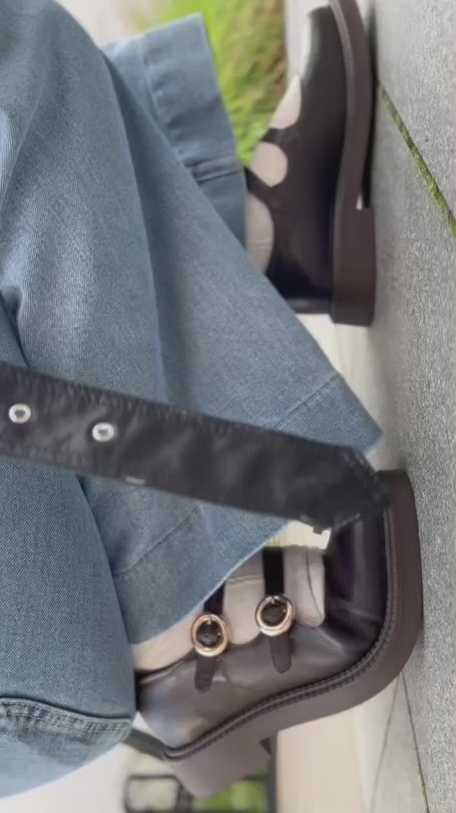 A double-strapped Mary Jane with gold buckles—where classic innocence meets sharp modernity. The leather is soft, steady—half armor, half gesture. Made for galleries, missed trains, and glances that linger just long enough.