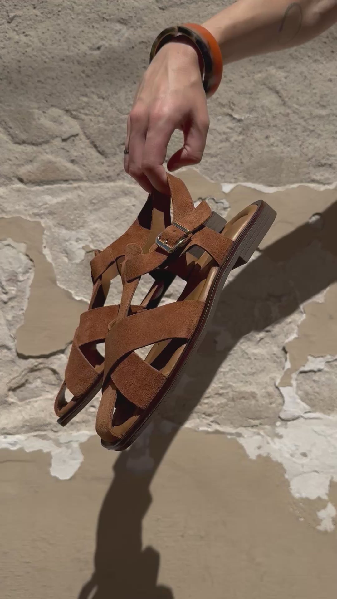 Need kreemkaramelli toonis nahast sandaalid on rafineeritud klassika ümberkirjutus neile, kes hindavad pingutusteta esteetikat. Laiad seemisnahast rihmad jooksevad üle jala kaldu nii, nagu teaksid täpselt, mida teevad – igal nurgal on siin oma geomeetria. Graatsiline siluett, õrn kuldne pannal ja pehme sisetald tagavad mugavuse isegi siis, kui sa ei kipu valima “mugavat”. Justkui juhuslikult lummavad – nagu naine, kes on harjunud, et teda vaadatakse, kuid ei tunne vajadust samaga vastata.
