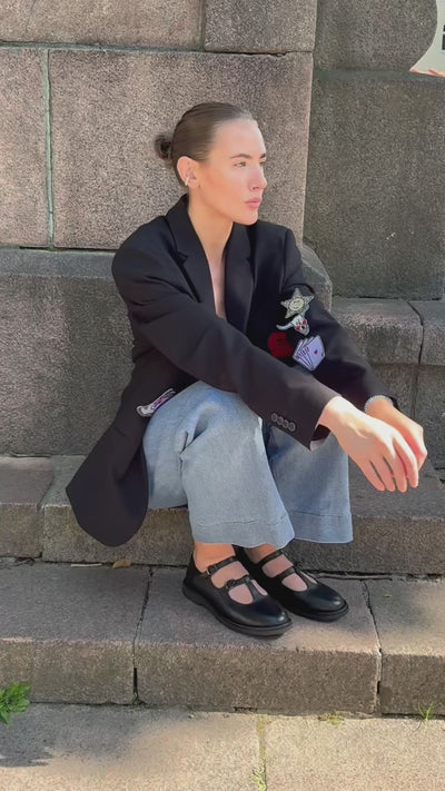 Need klassikalised „Mary Jane“ stiilis kingad õrna gootiliku nüansiga ühendavad ajatu elegantsi ja tänapäevase linnamelu. Must matt nahk, kahekordsed pannaldega rihmad ja mugav tald annavad neile ainulaadse iseloomu. See on jalats, mis sulandub kergesti julgesse, kuid rafineeritud garderoobi, väljendades peenet isikupärast stiili.